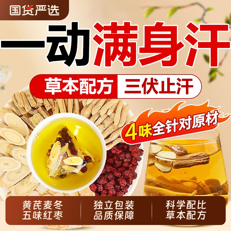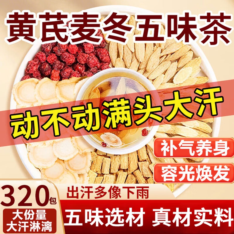 止汗黄芪麦冬五味子茶官方旗舰店中材药泡水喝组合出汗多茶包正品