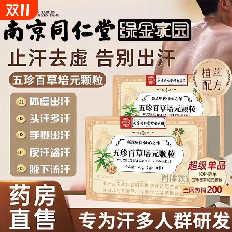 南京同仁堂五珍百草培元颗粒内调出汗气虚止盗虚汗官方正品旗舰店