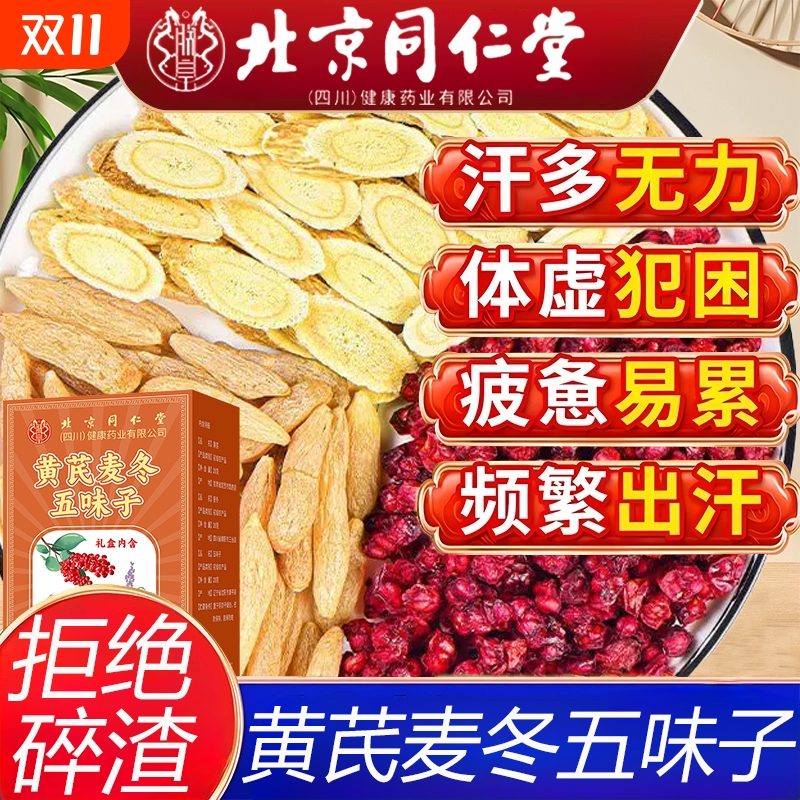 北京同仁堂黄芪麦冬五味子茶非中药材正品官方旗舰店止出汗养生茶
