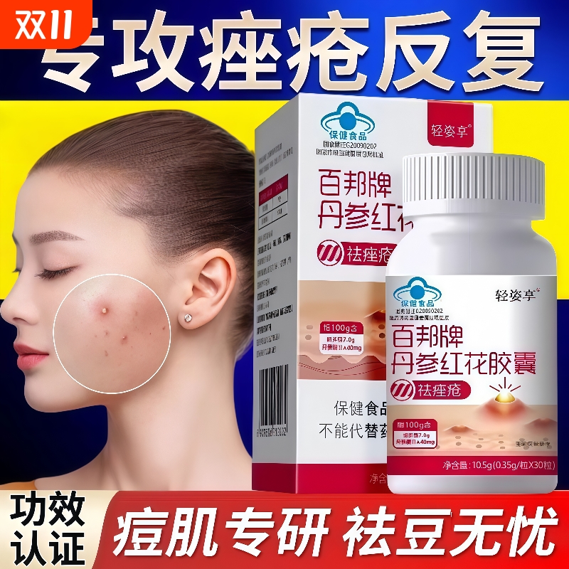 百邦牌丹参红花胶囊祛痤疮内痘分泌调理男女性内服正品官方旗舰店