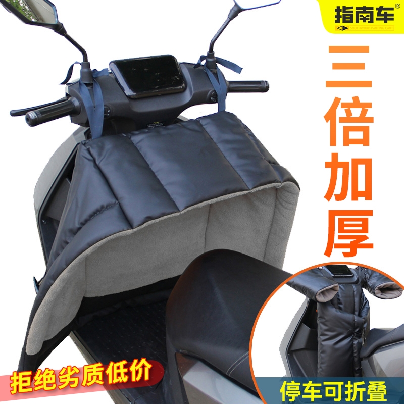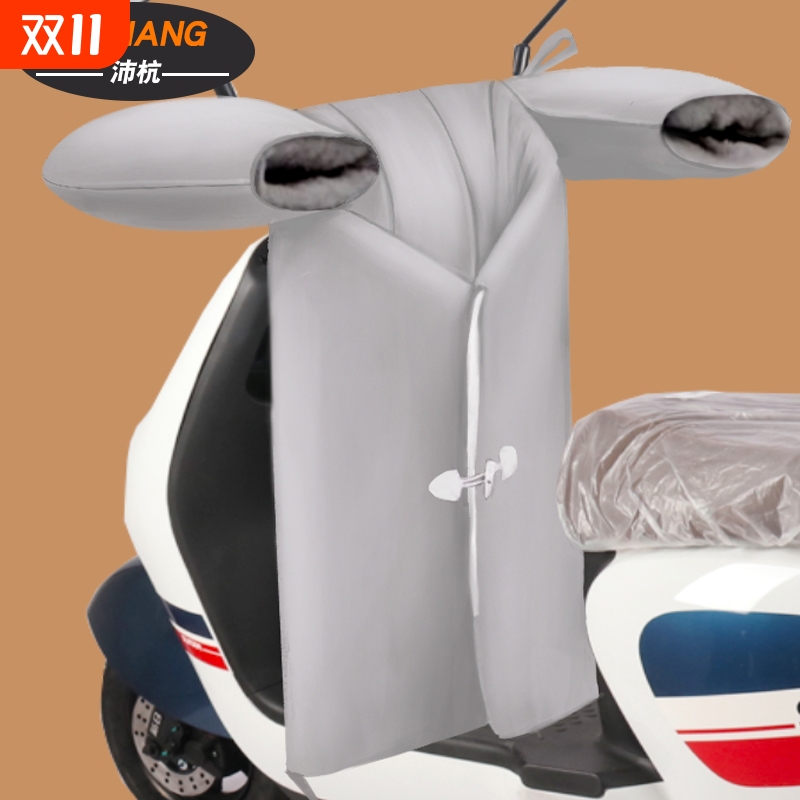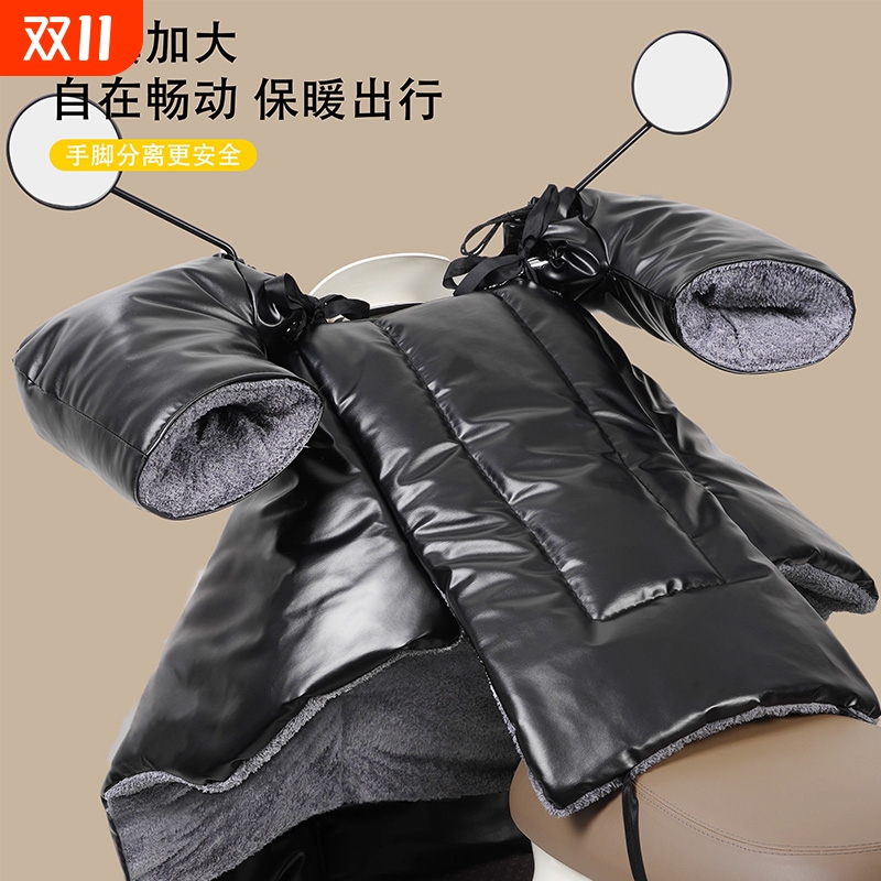 电动摩托车挡风被冬季防水加厚小羊皮加绒保暖分体挡风踏板皮革