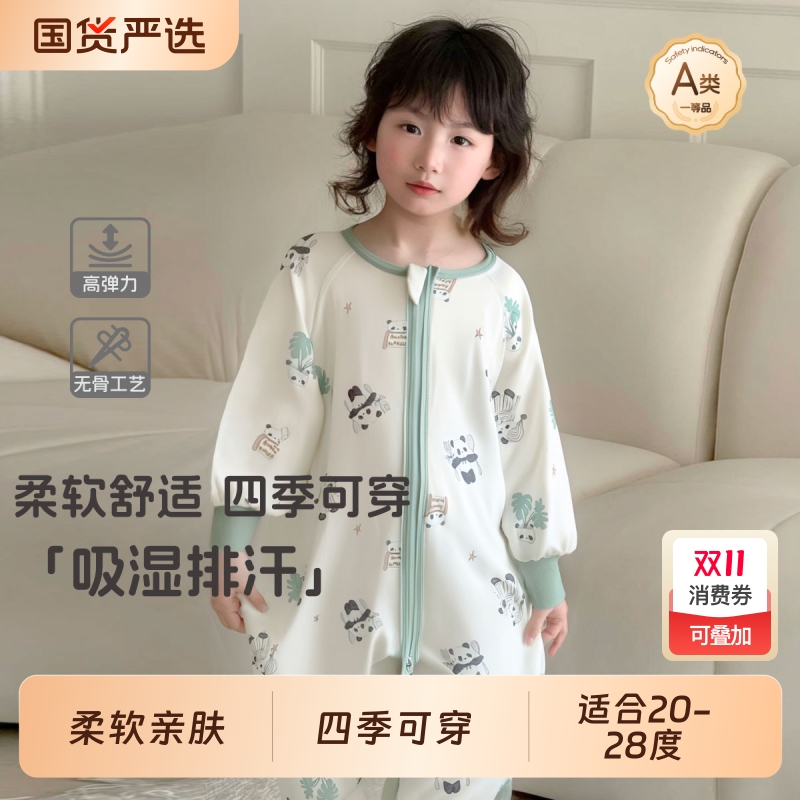 睡袋儿童防踢被莫棉睡袋拉链新款男女宝分腿连体睡衣A类四季通用