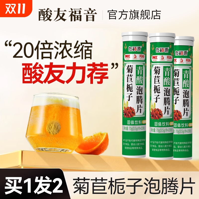 菊苣栀子泡腾片酸友茶饮尿根茶高喝什么降利尿茶包官方旗舰店酸