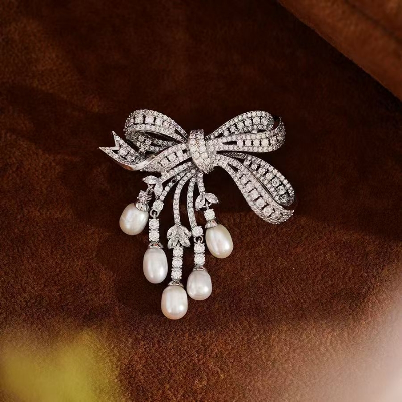轻奢满钻重工蝴蝶结流苏高档胸针精致气质秋冬毛衣西装胸花别针女