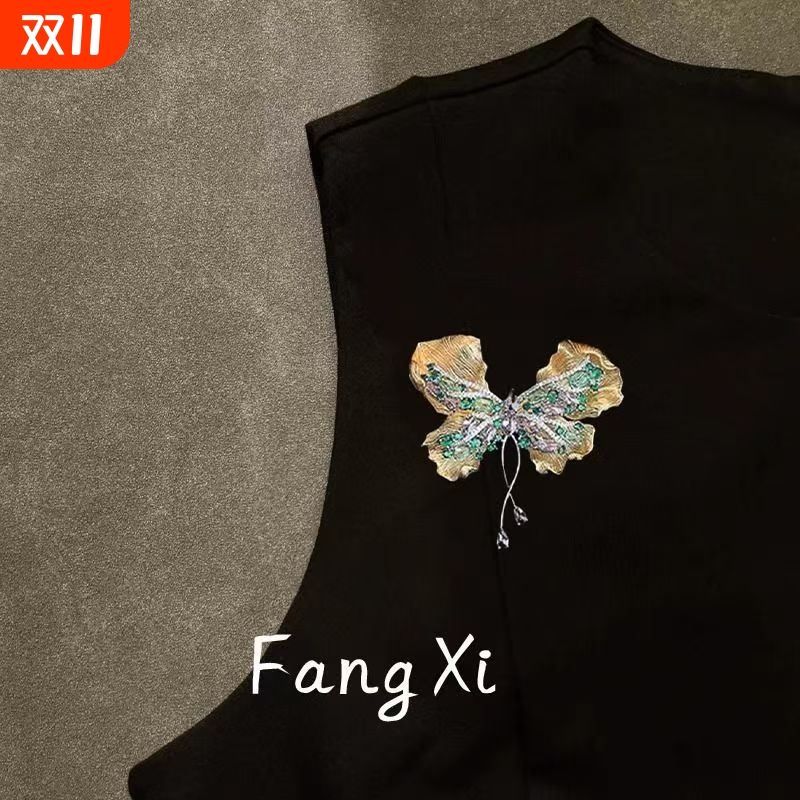 ''福蝶降临''法式复古拉丝蝴蝶胸针高级感小众重工外套裙子别针女