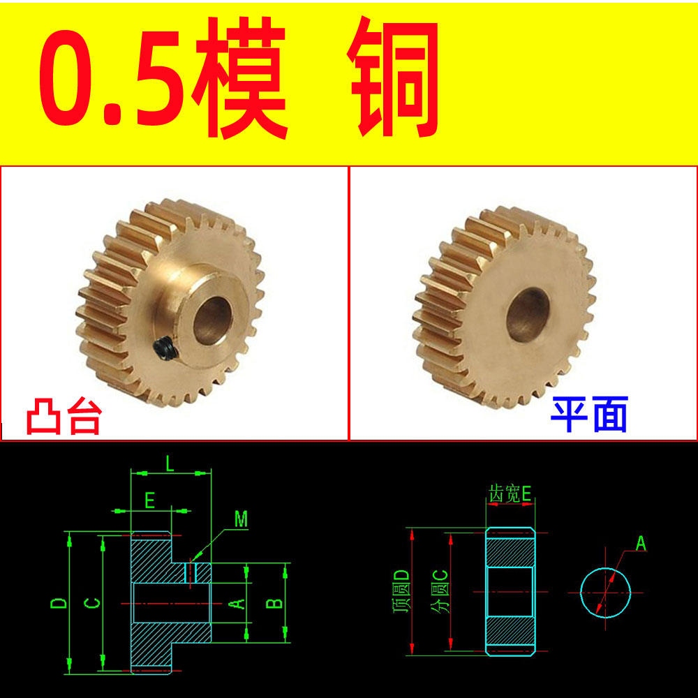 0.5模20到29T齿精密黄铜齿轮小模数齿轮条精孔H7微型玩具马