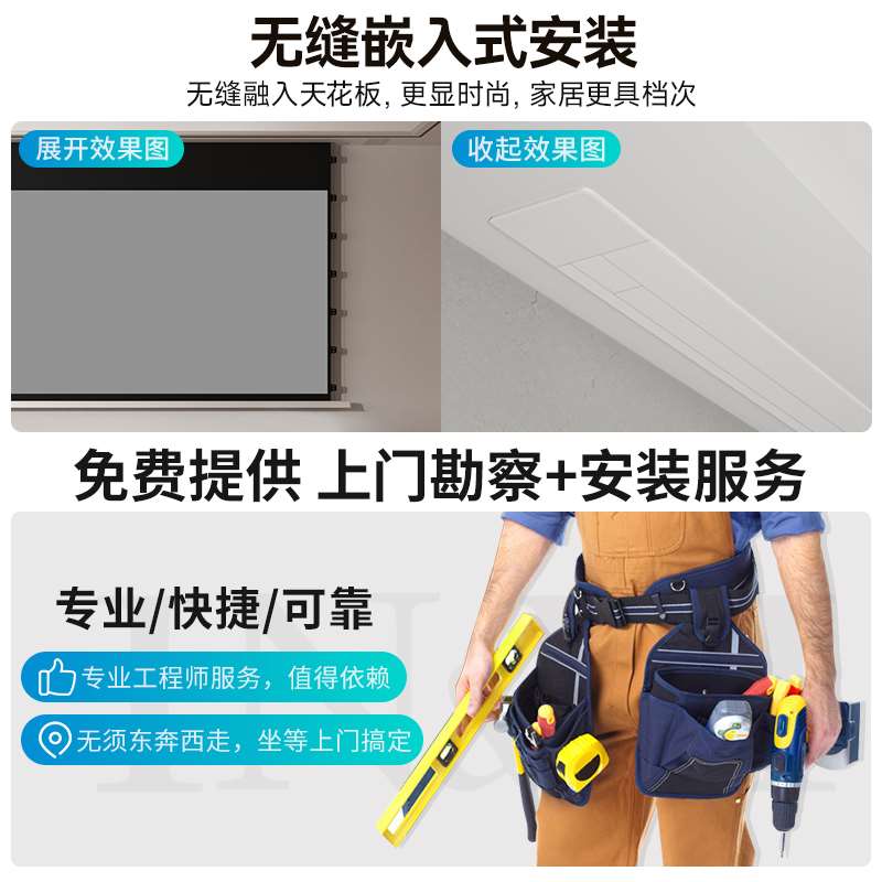 英微投影幕布嵌入式隐藏天花幕100/120寸电动抗光幕布家用高清
