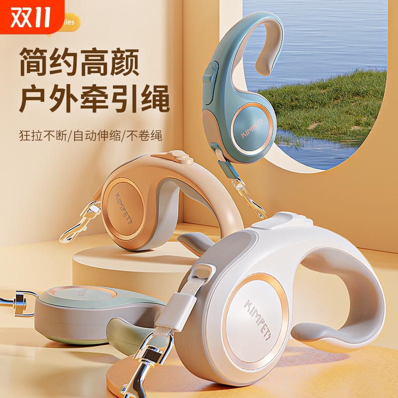 轻巧型自动伸缩牵引绳一键制动中型小型犬遛狗链带子