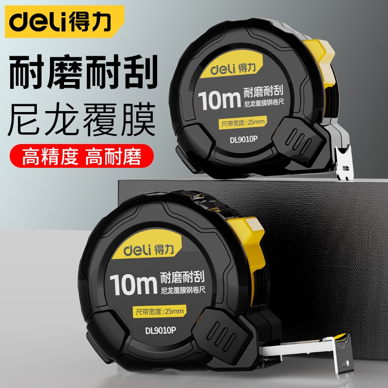 得力钢卷尺3米5米7.5米家用双制动测量精准尼龙覆膜卷尺米尺盒尺