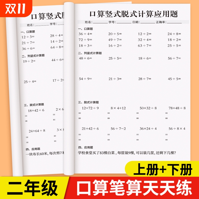 口算竖式应用题天天练一二三四五六年级上下册数学加减乘除练习册
