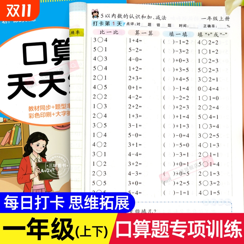 一年级上册下册口算天天练二三年级口算题卡数学练习题专项同步练习题