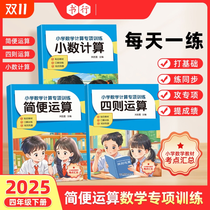 四年级下册数学简便运算小学四下专项强化训练上册每日一练人教版乘法