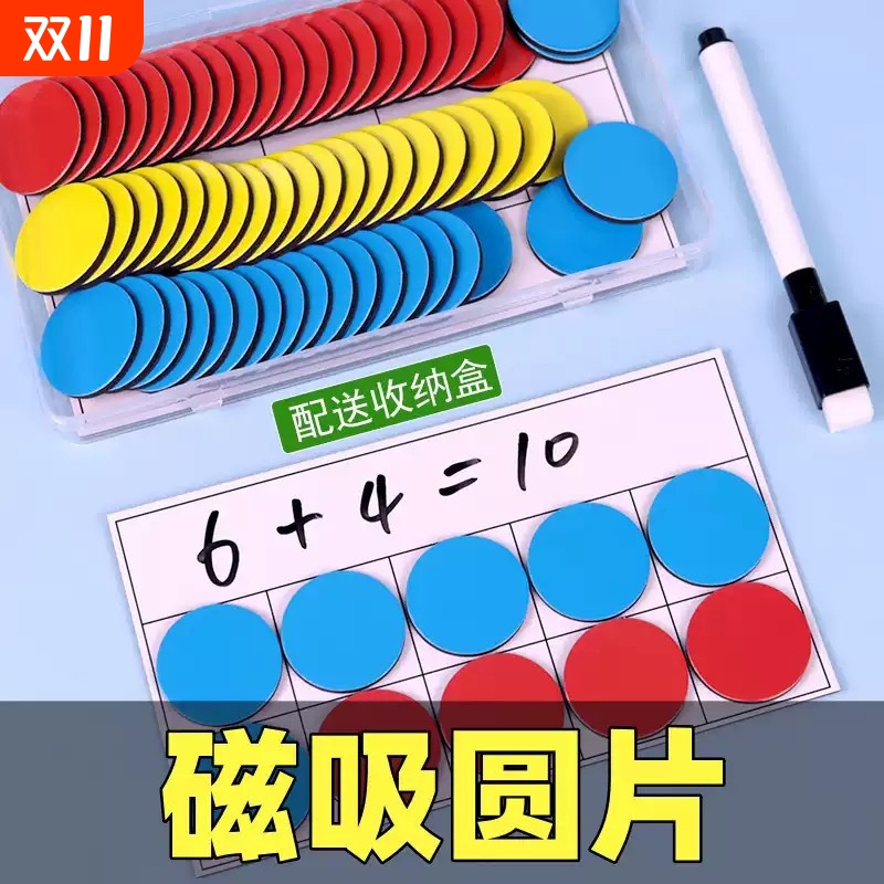 圆片教具计数磁性大号学具磁吸红色蓝黄绿十格阵计算术10以内加减