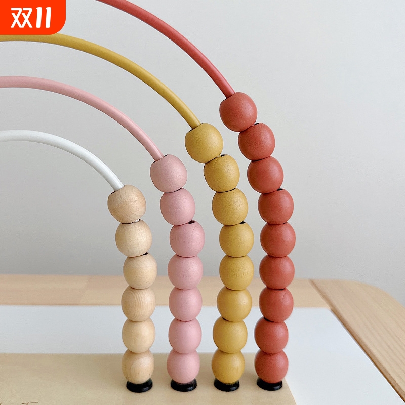 木制北欧风四色珠算架儿童加减学习法计数器算术架教具益智玩具批