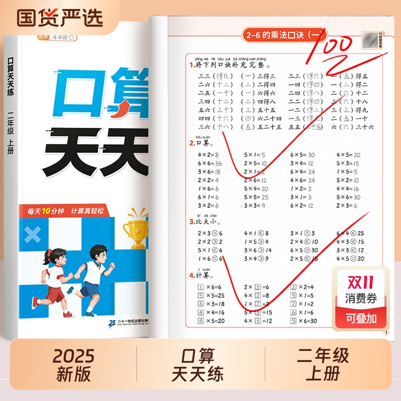 口算题天天练人教版一年级二年级三年级数学计算题每日一练小学上下册