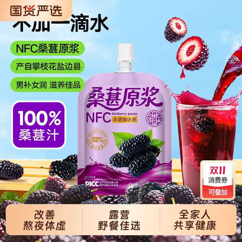 养益君桑葚原浆NFC非浓缩不加水花青素纯果饮料黑桑椹子汁液原
