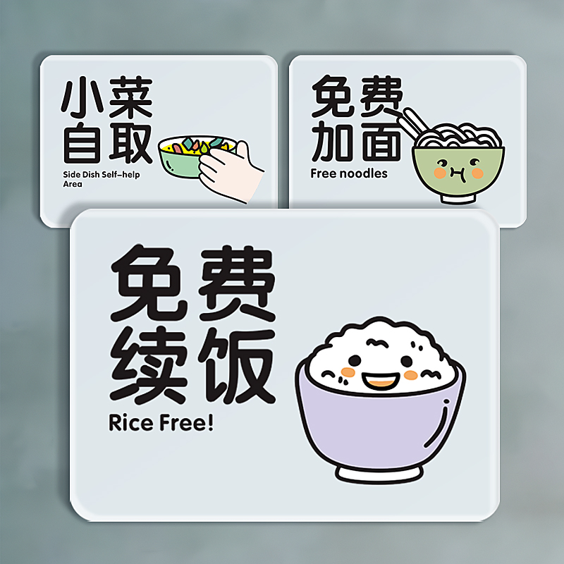 饭店餐厅面馆调料台提示牌免费加米饭牌加面续粉标志牌例汤自助加汤不