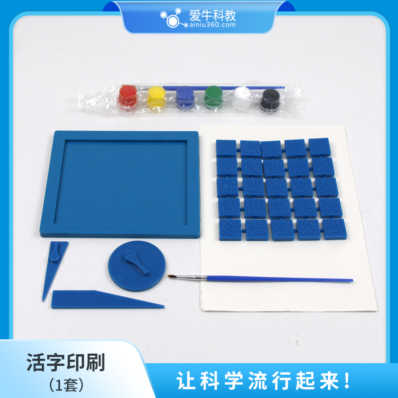 小学科学活字印刷套材包括活字,颜料,刷子,纸,模具,等材料
