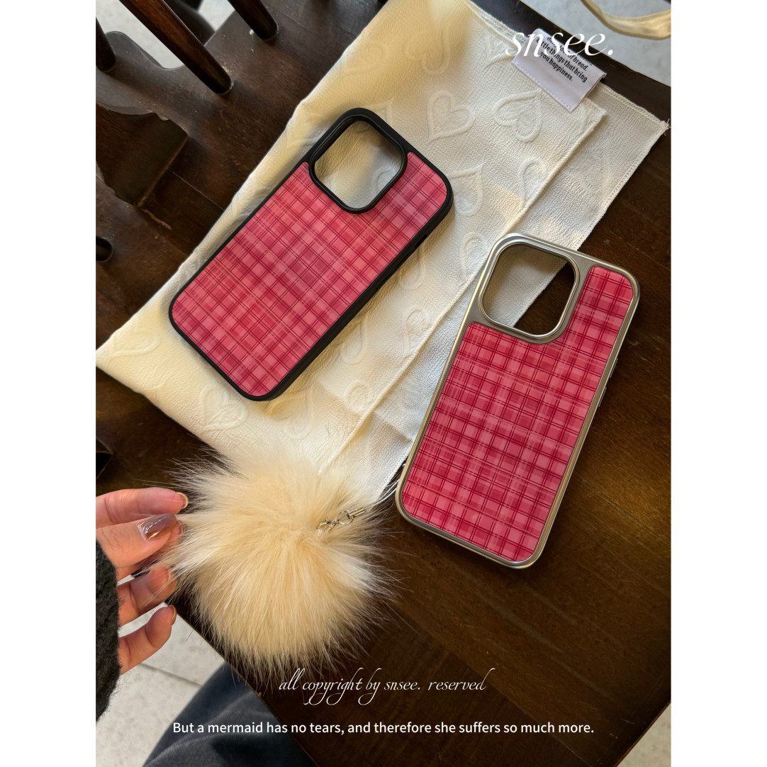 红格纹小众镀银边软壳适用于苹果手机壳iPhone16promax
