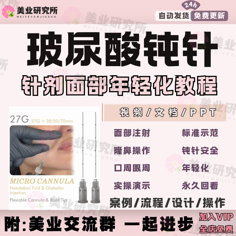 玻尿酸针剂注射年轻化隆鼻钝针面部填充解剖微整口周眼周视频教程