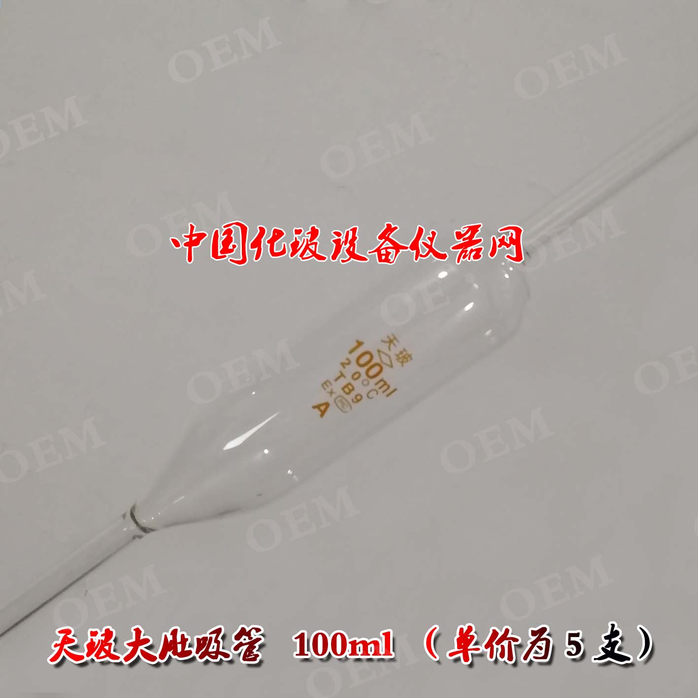 A级天玻大肚吸管100ml 5支胖度移液管 单标刻度吸管 可过检