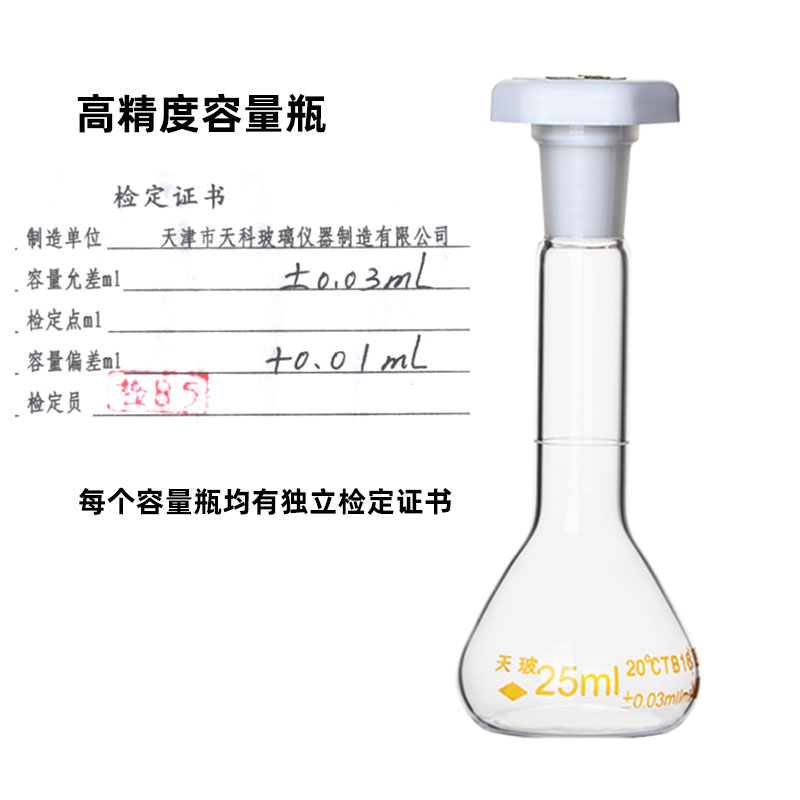 高精度天玻容量瓶证书塑料塞A级棕色包检10/25/50/100/