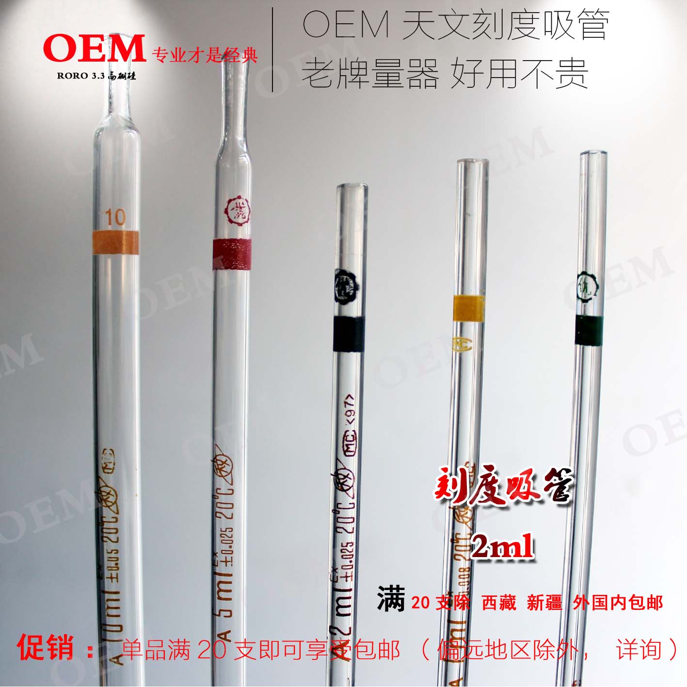 【刻度吸管2ML】分度过检 色标 环标 量器 2ml玻璃短吸 天