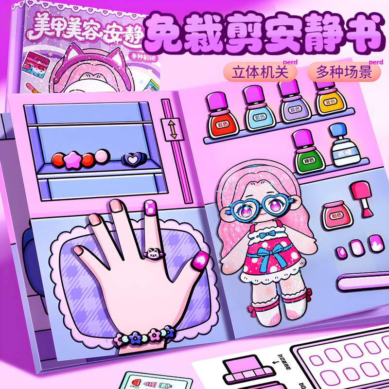 2025新爆款美容美甲安静书免裁剪手工diy材料包儿童创意粘贴过