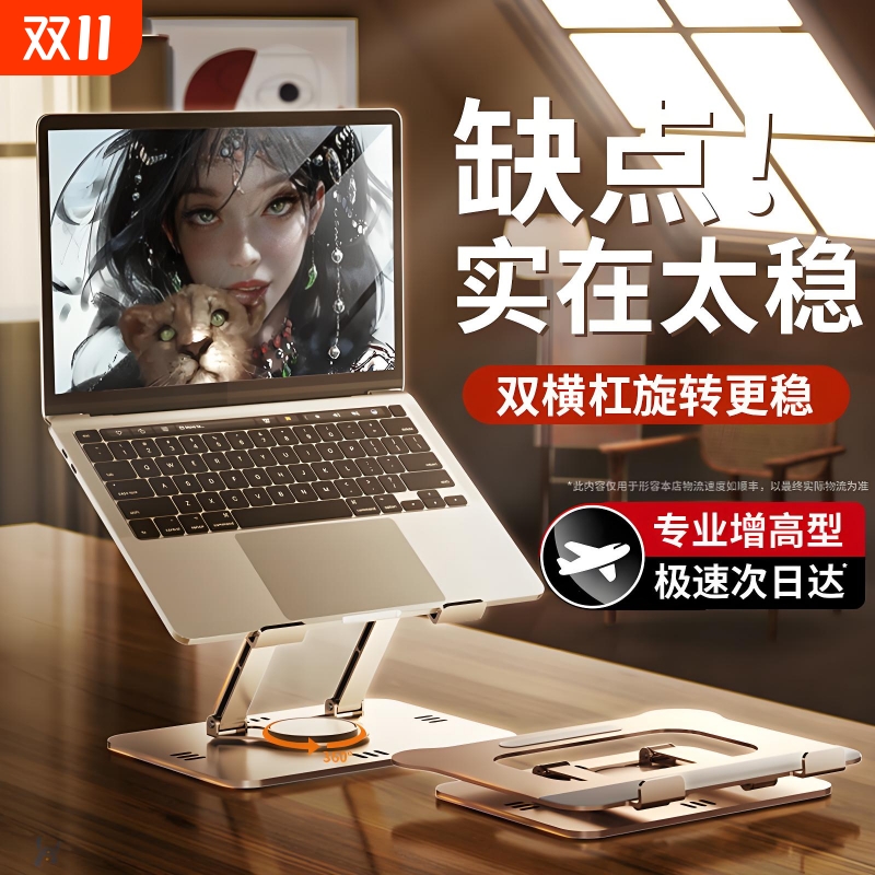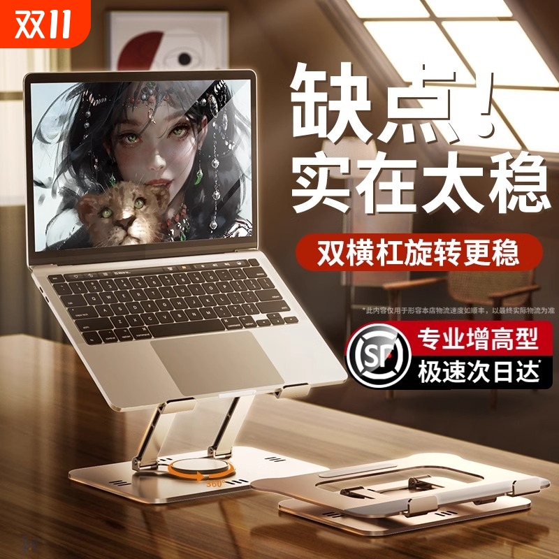 【360°旋转】笔记本电脑支架增高架台立式散热办公折叠可升降托悬
