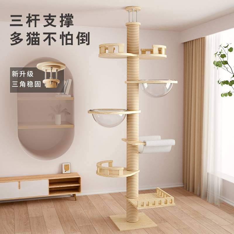 猫爬架猫窝猫树一l体通天柱猫跳台顶天立地实木猫架子不占地猫玩