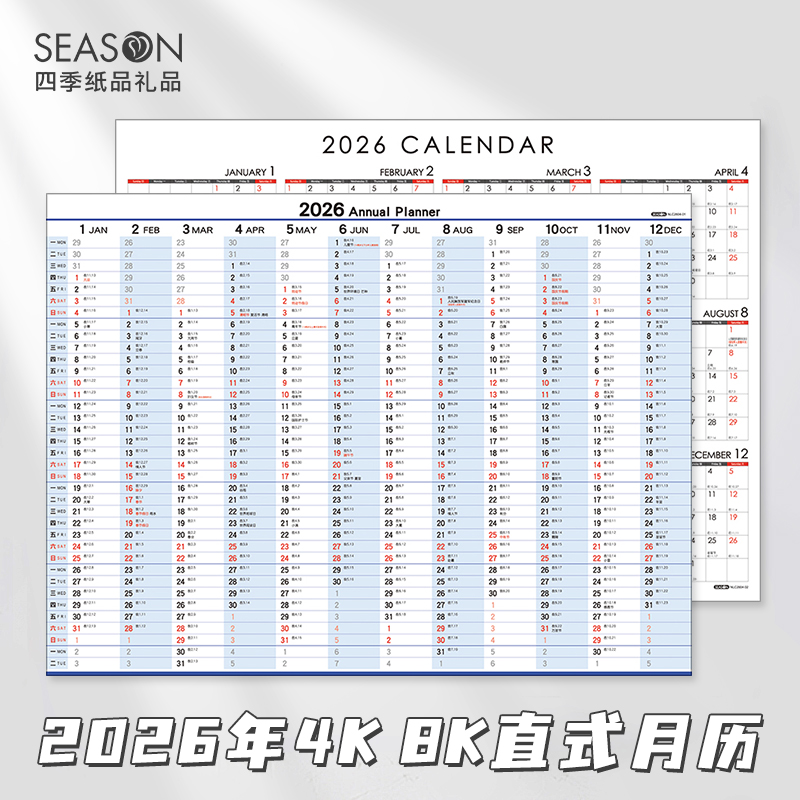 2026年全年一张日历英文版日历墙面挂历创意简约计划表圣诞节礼物