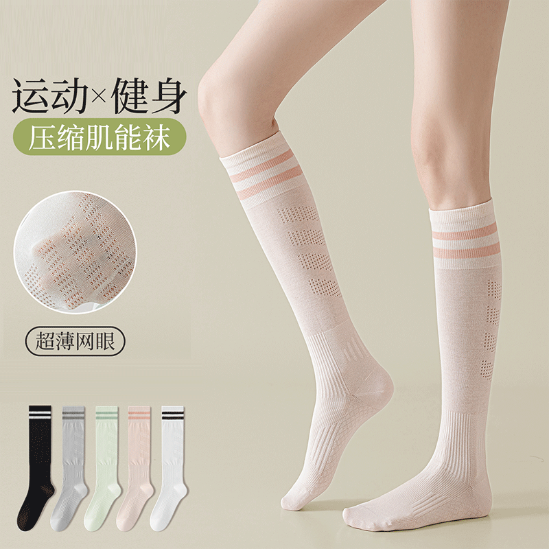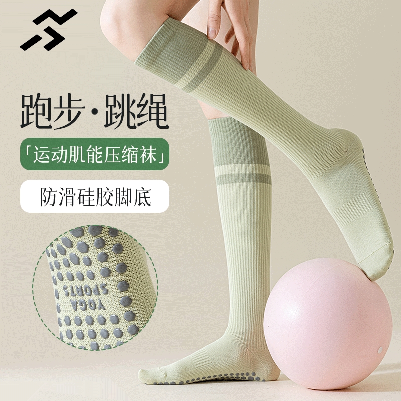 压力条纹瑜伽袜子女小腿袜美腿塑形居家健身防滑跳绳跑步运动长袜