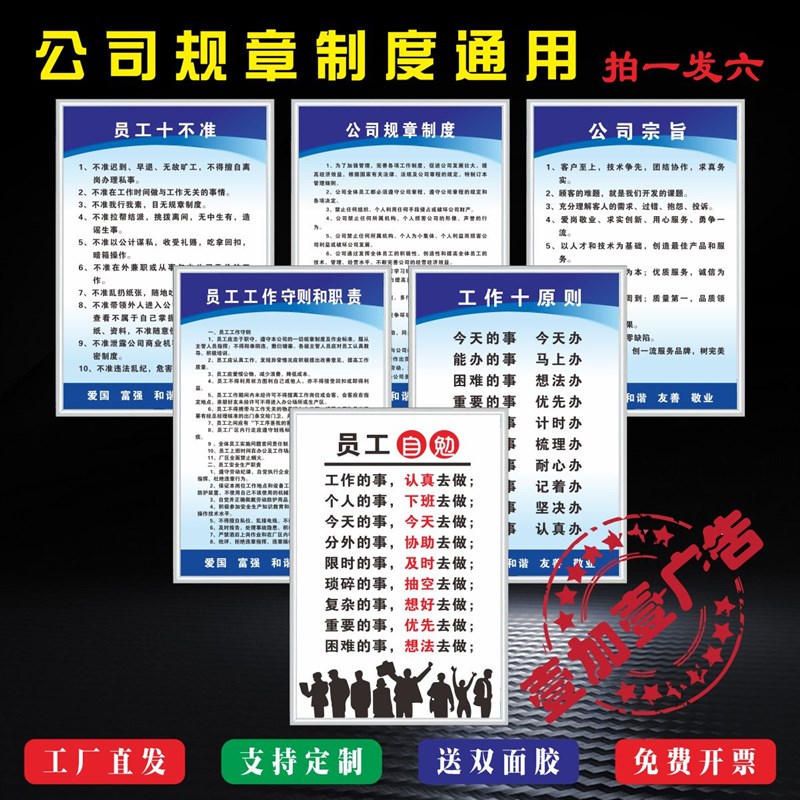热销公司管理规章制度牌企业办公室员工守则文化标语工作原则十不