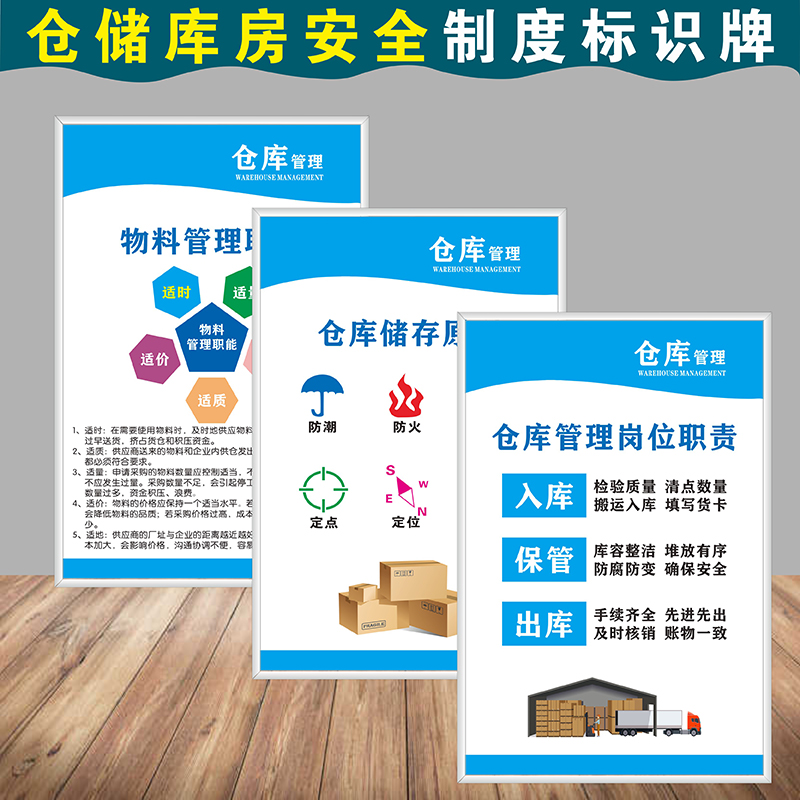 仓库管理制度标识牌仓储库房物料堆放原则人员岗位职责规章安全八