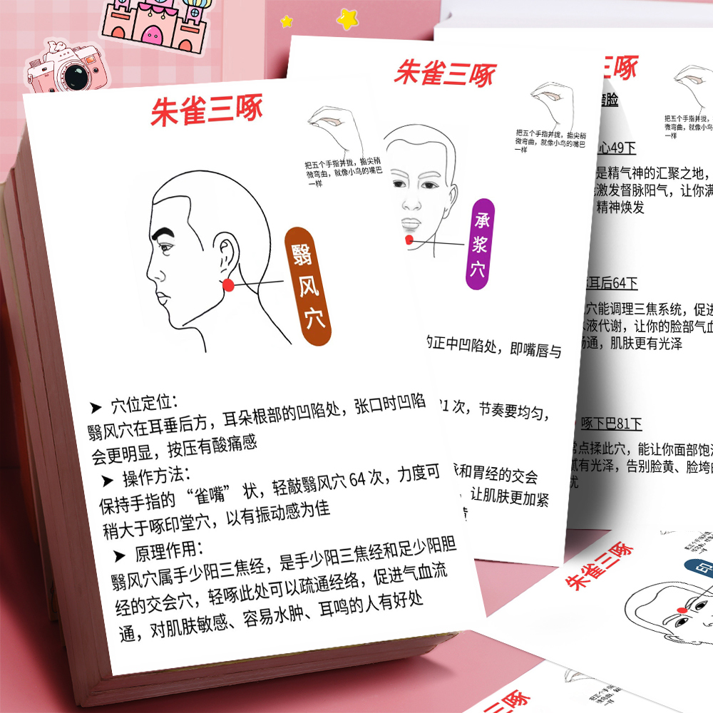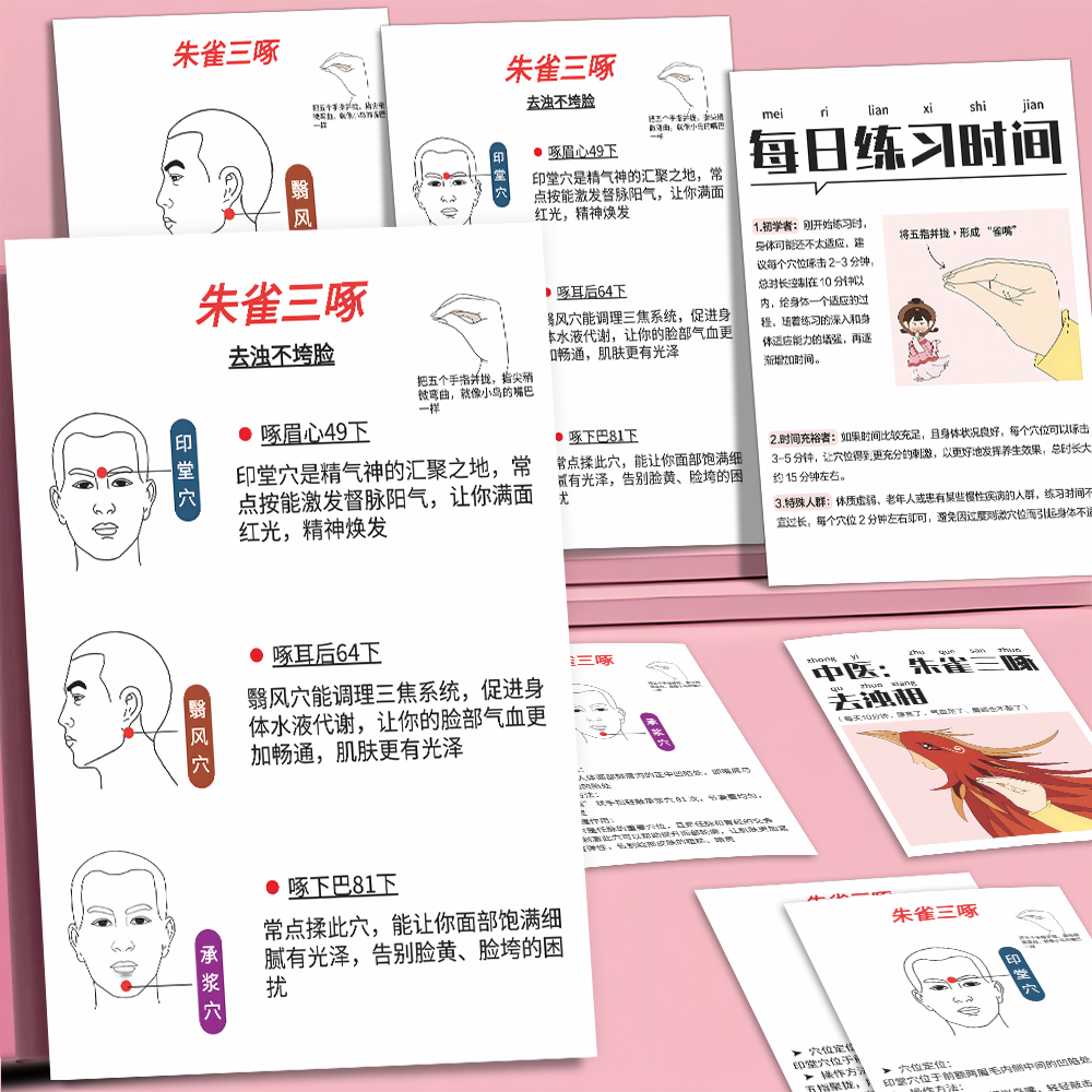 朱雀三啄中医古法养颜每日练习面部去浊穴位按摩变美小技巧贴纸