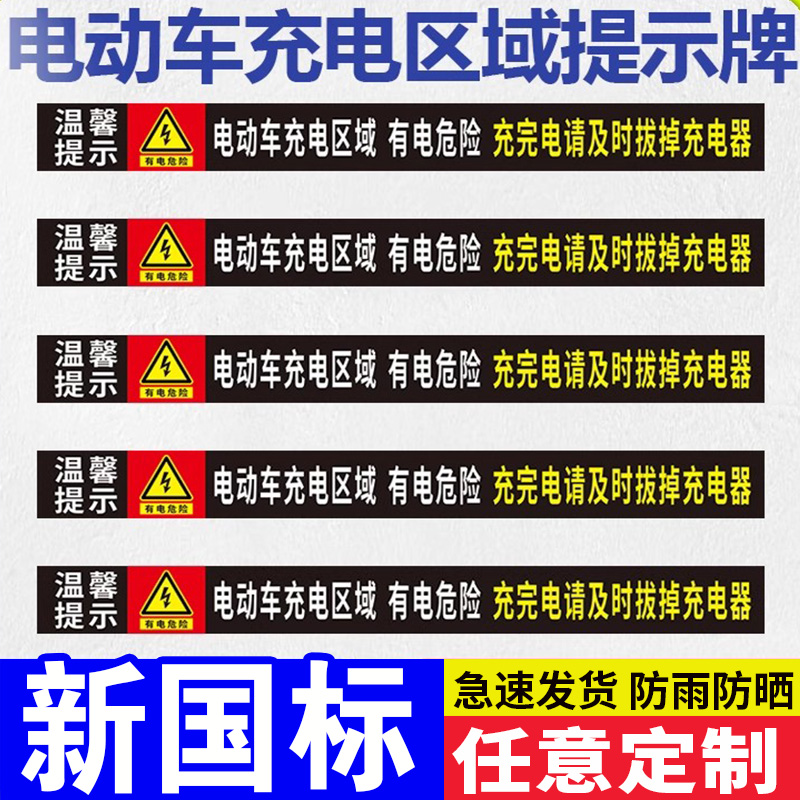 电动车充电区域提示牌温馨提示有电危险充完电请及时拔掉充电器充电桩