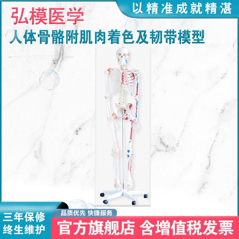 85CM人体骨骼带神经带椎间盘模型骨架附肌肉起止点着色及韧带模型