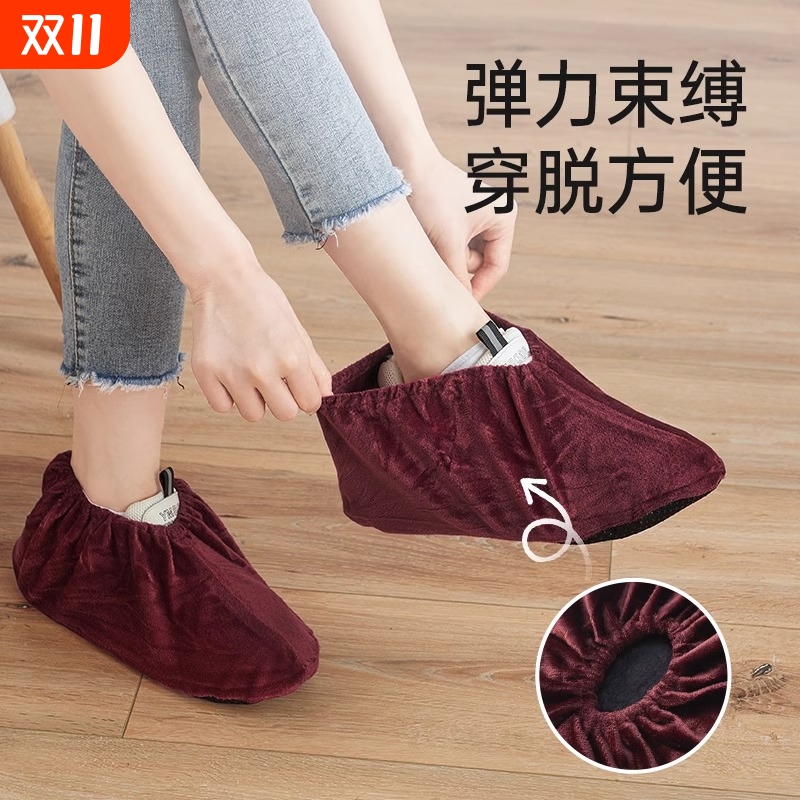 鞋套家用室内绒布机房学生成人布料可反复洗儿童加厚脚套大童防滑