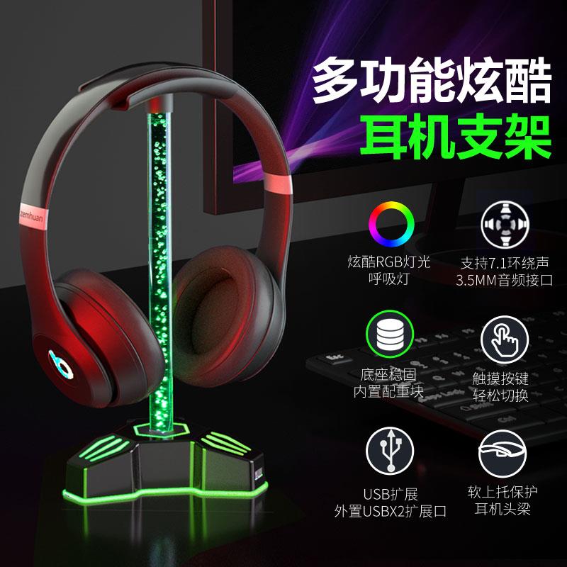 RGB发光头戴式耳机支架电竞气氛灯USB延长线创意多功能耳机架子