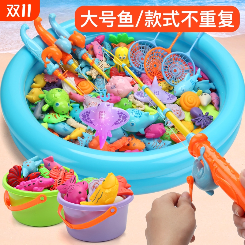 儿童磁性鱼池竿钓鱼玩具感应发光2到3周岁男女孩宝宝生日礼物套装