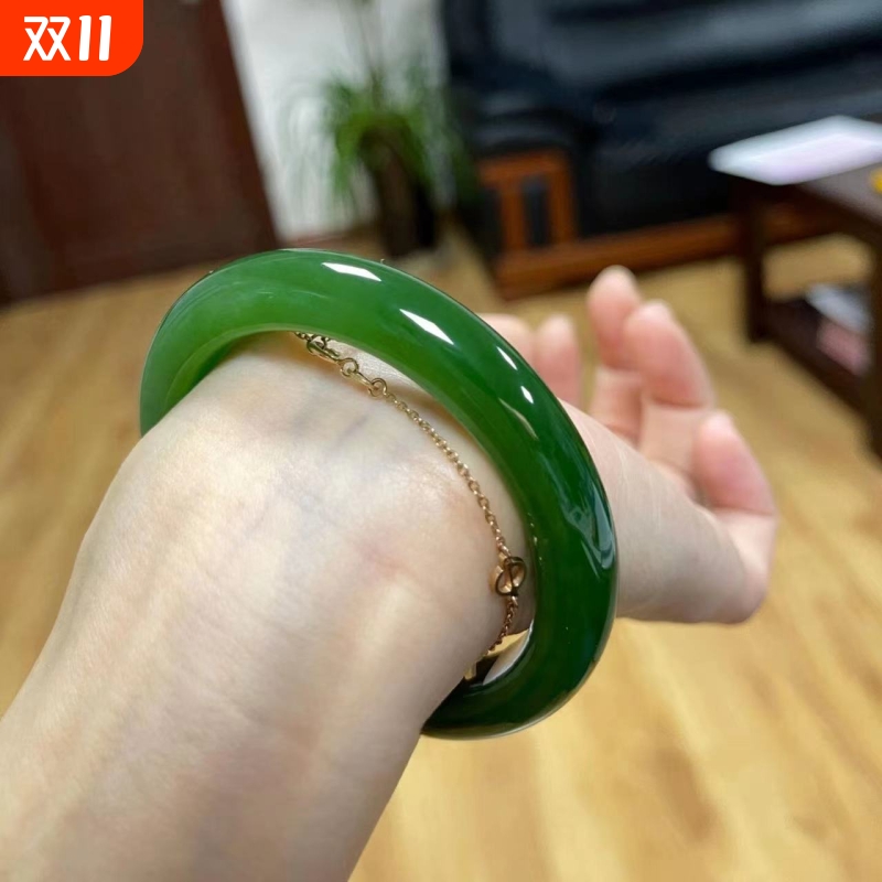 年轻款菠菜绿和田玉手镯女款胖圆条新疆仿玉镯冰种碧绿玉髓镯子
