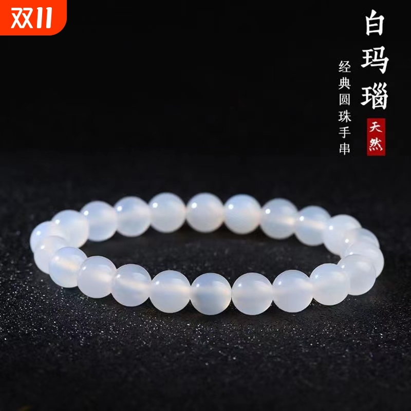 天然白玛瑙手链正品荔枝冻玉髓珠子串珠多圈水晶串白月光玛瑙手链