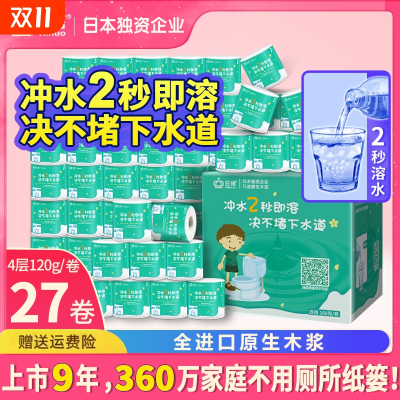 日诺水溶卫生纸可溶水卷纸融水家用无芯卷筒纸厕纸巾4层80克 10
