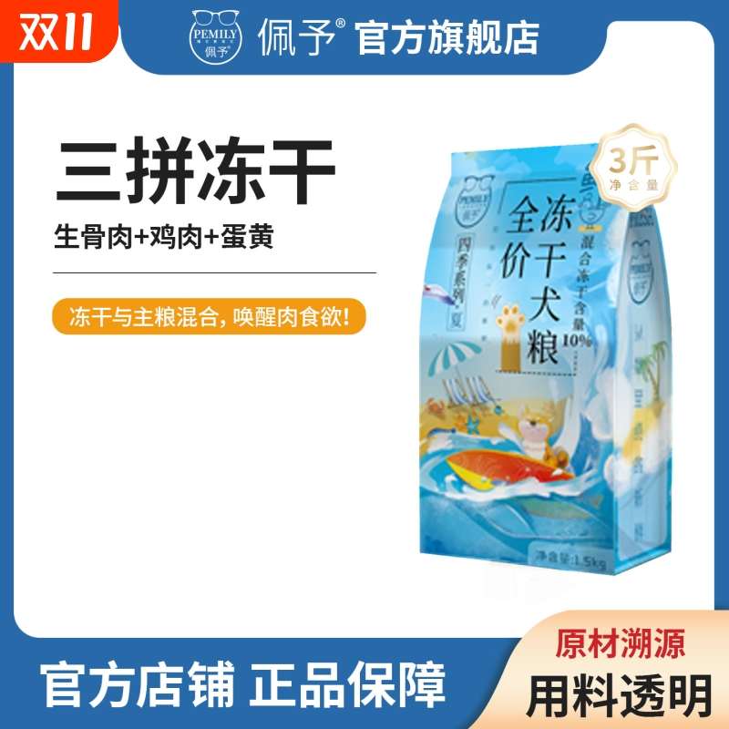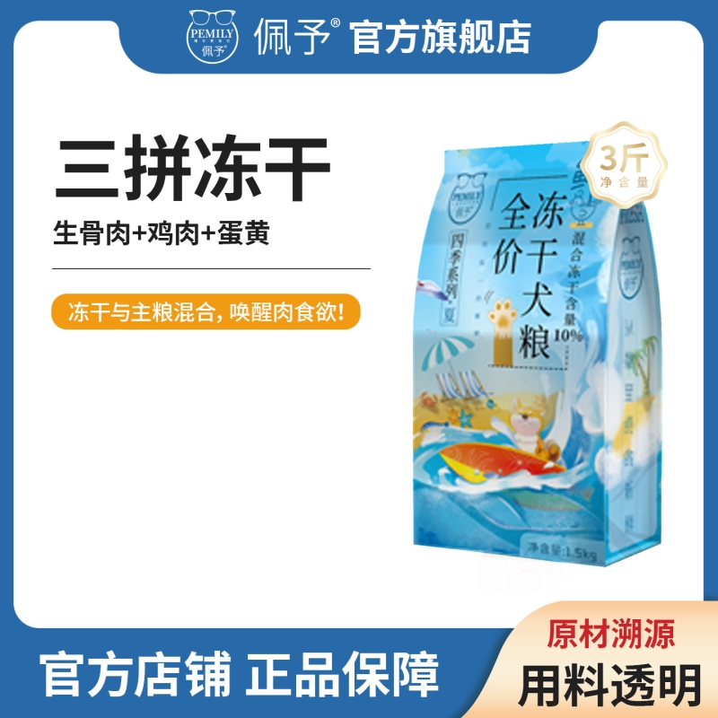 佩予三拼全价冻干犬粮1500克大包装混合无诱食剂无豆可溯源幼犬