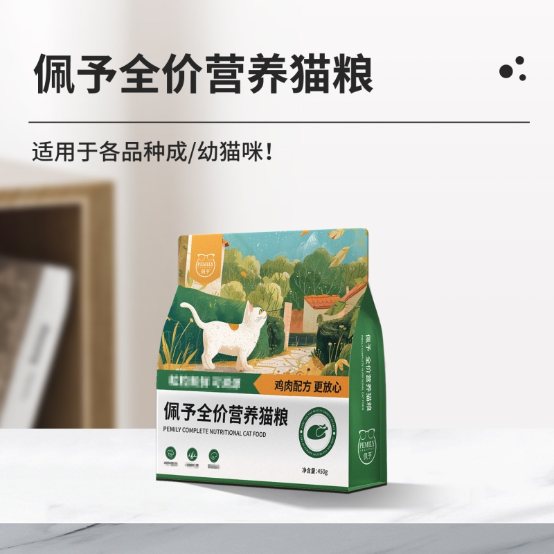 佩予全价营养猫粮袋装450g成幼猫可食用鸡肉配方无豆无诱食剂