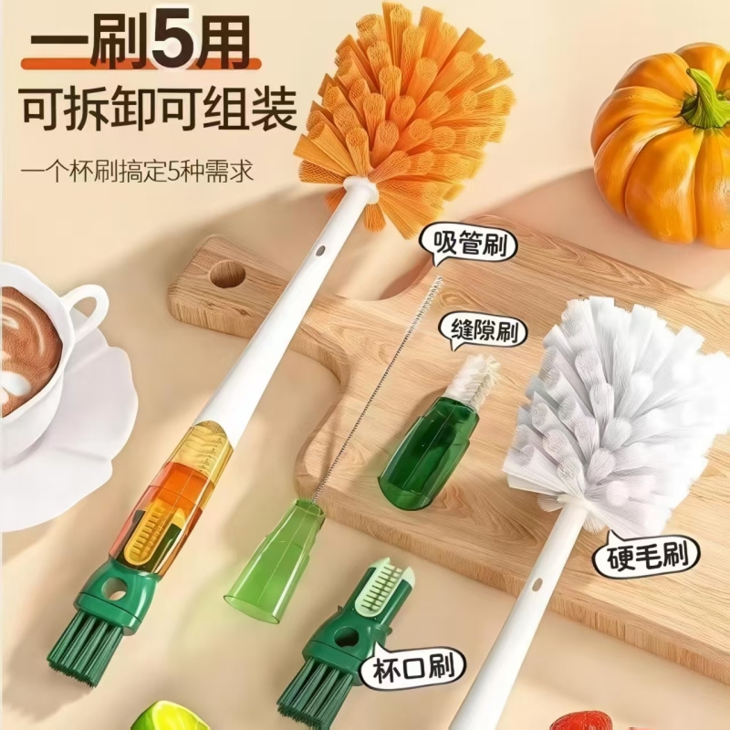 杯刷清洗神器保温杯盖清洁刷五合一长柄奶瓶刷子洗杯子吸管刷好物