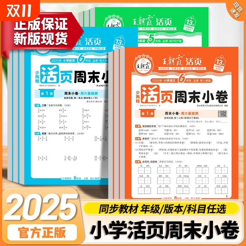 2025秋王朝霞少而精活页周末小卷小学语文数学英语123456年