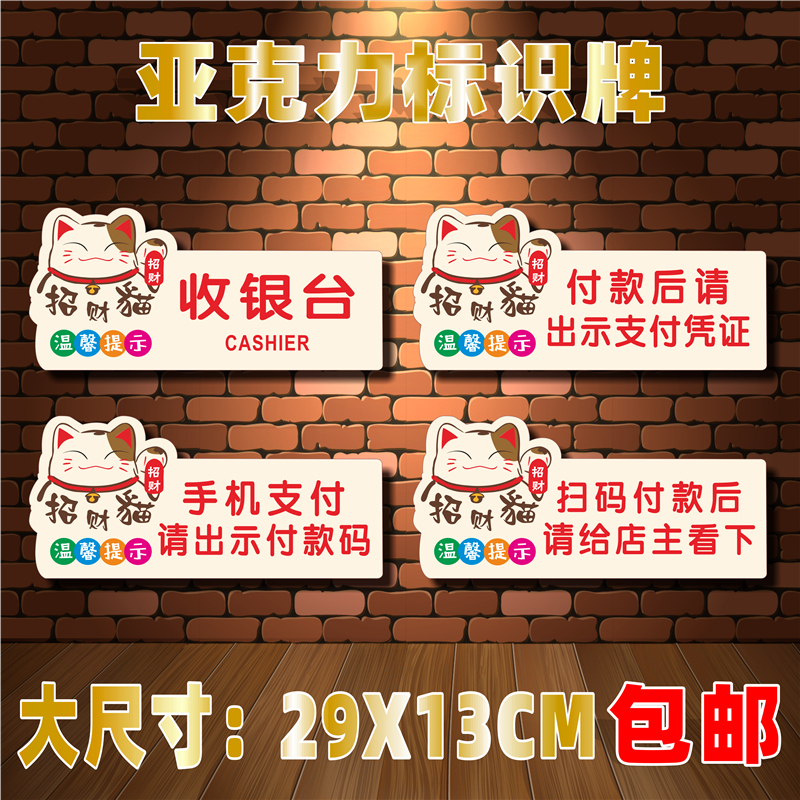 扫码付款后请给店主看下亚克力收银台标识牌手机支付请出示付款码