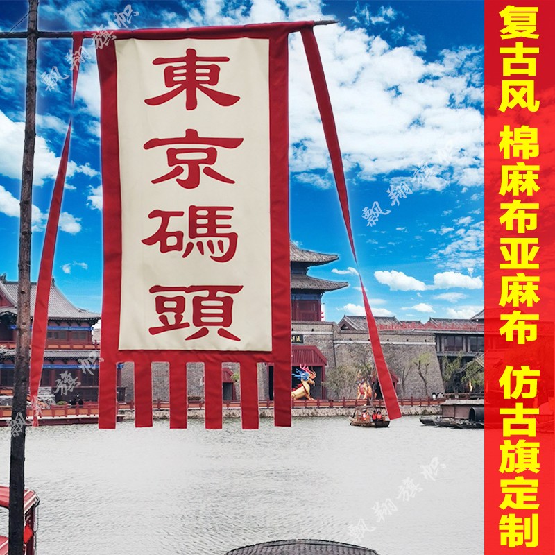 老粗布仿古旗定制棉麻布古代广告旗子吊旗景区旗老旧招牌旗帜定做