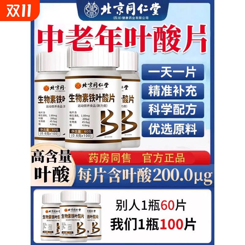 北京活性叶酸片100片中老年男士高含量黑yc维生素健康